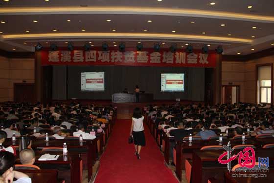 中国网6月15日四川讯 为切实加强四项基金管理使用,确保四项基金持续发挥作用,有效解决贫困群众现实难题和长远生计,根据《四川省财政厅关于落实全省四项扶贫基金培训会议精神有关事项的通知》(川财农〔2017〕65号),13日,遂宁市蓬溪县组织召开四项扶贫基金培训工作会议。会议主要是对基层干部培训宣传四项扶贫基金筹集、使用、管理,重点解读四项扶贫基金使用管理办法;宣传四项扶贫基金使用对象、支持标准、审核程序、发放方式等内容。