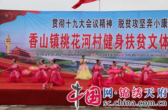 1月4日,由遂宁市委办公室、遂宁市老体协、射洪县委统战部、县老体协指导,香山镇党委政府主办,香山镇桃花河村两委承办,县老体协体育舞蹈艺术团协办的“贯彻党的十九大会议精神,脱贫攻坚奔小康”健身扶贫文艺汇演在香山镇桃花河村开展。市老体协主席魏福友,县委常委、统战部部长马英出席活动。