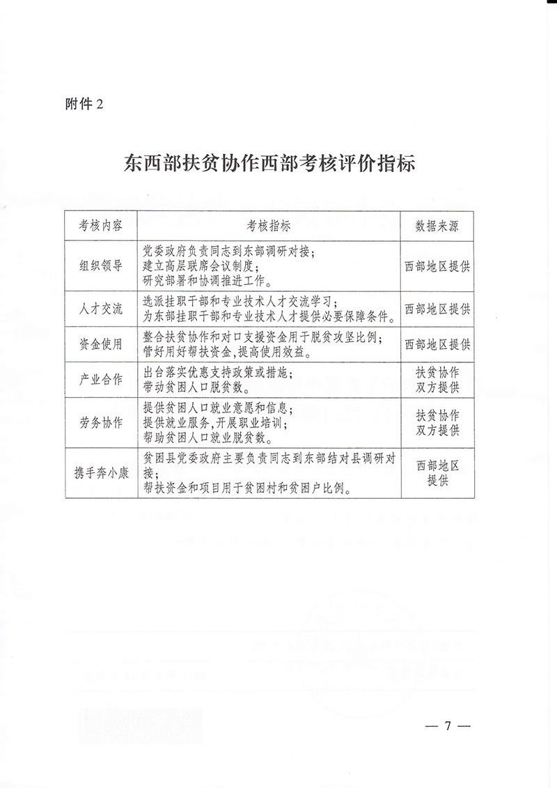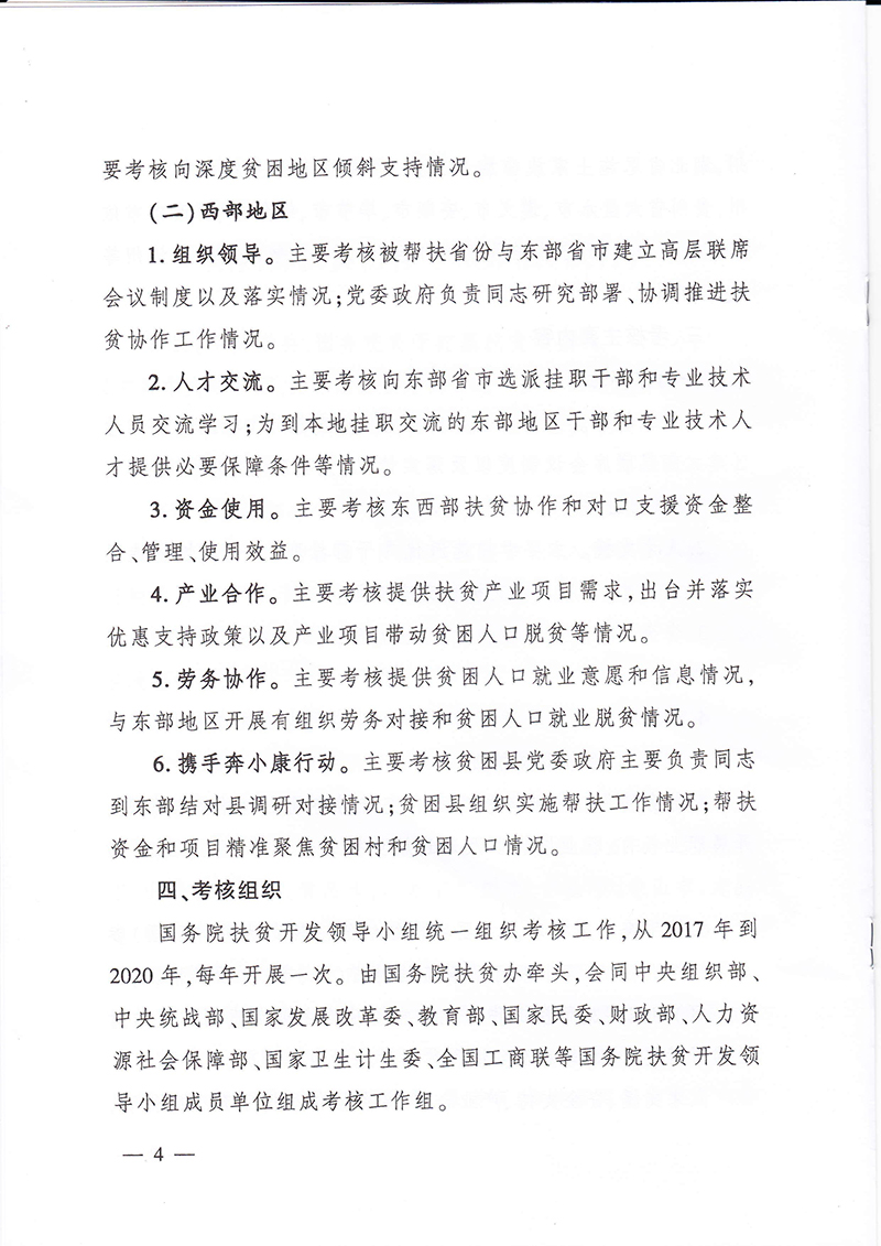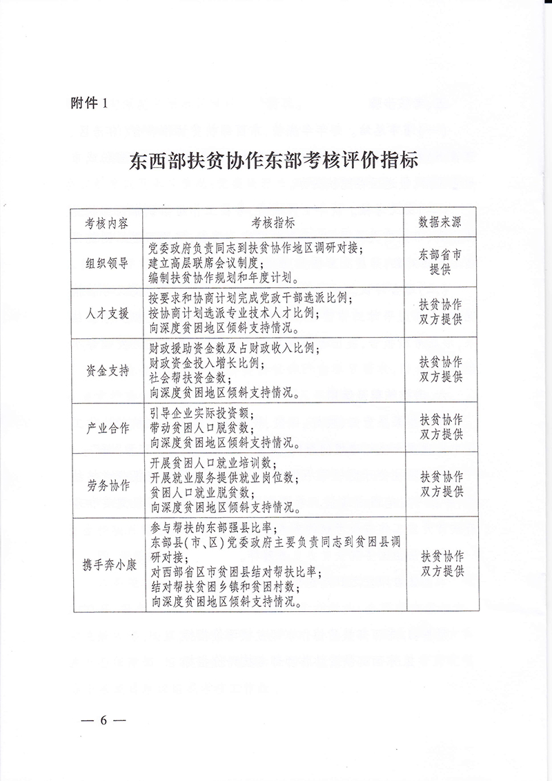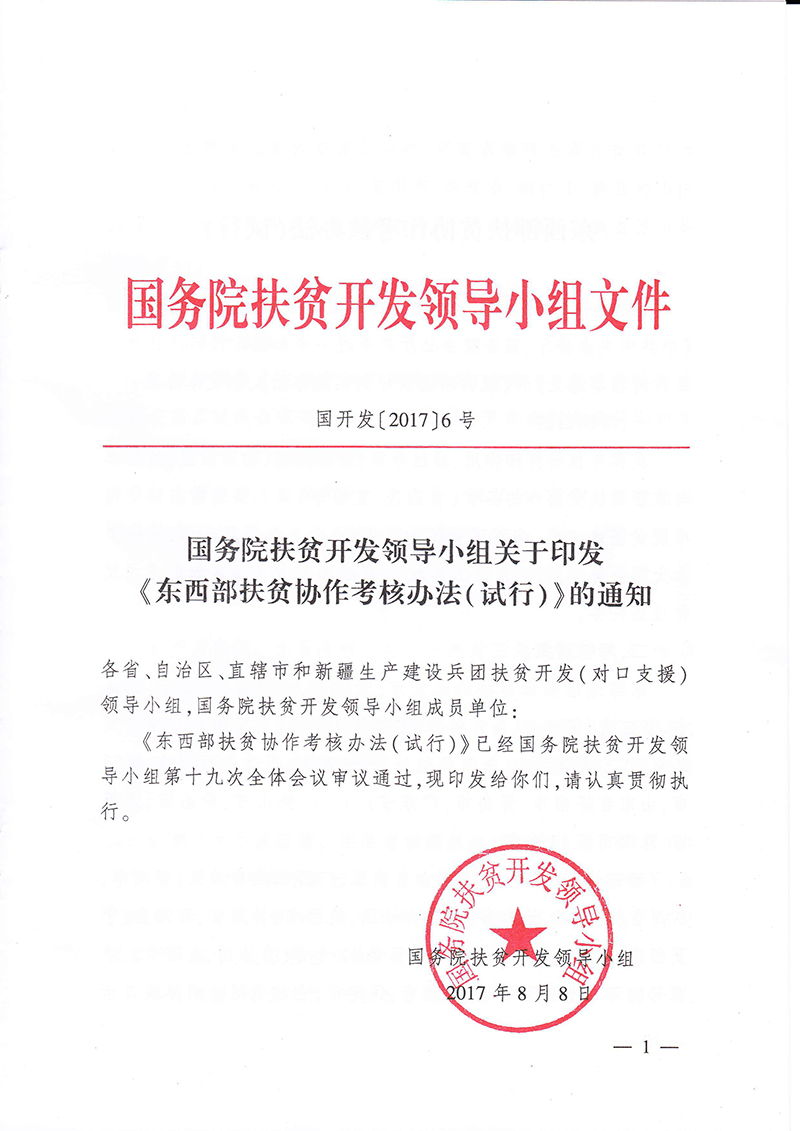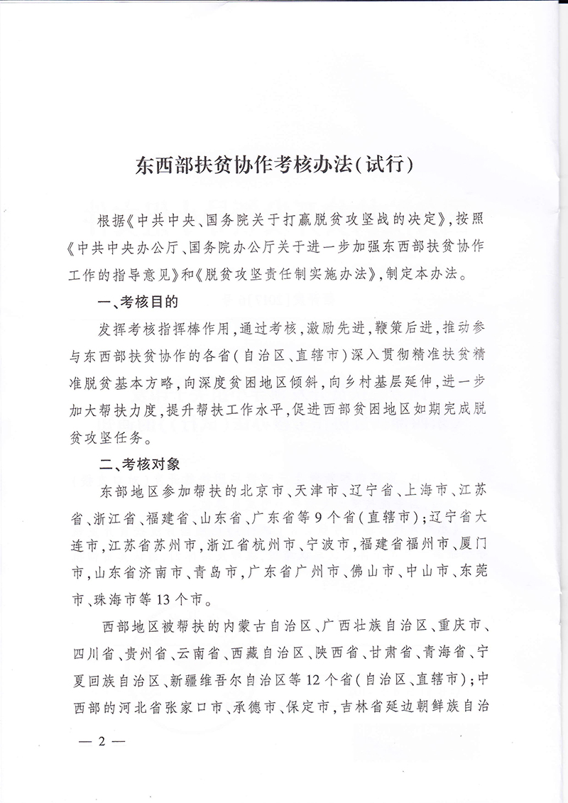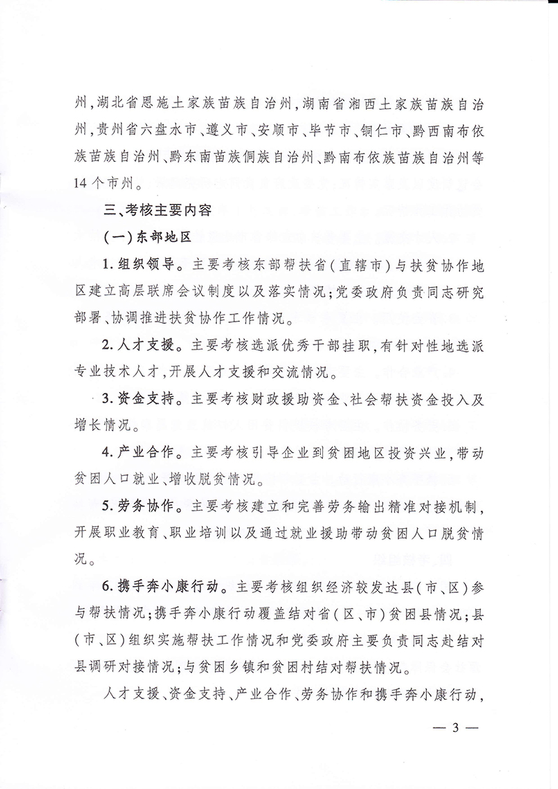 关于印发《东西部扶贫协作考核办法(试行)》的通知